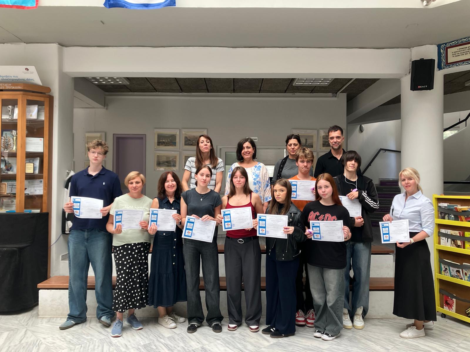 Projekta beigās - jauks brīdis - sertifikātu izsniegšana dalībniekiem! Nu, un, protams, tradicionālais mūs visus apvienojušais sirtaki uz atvadām! Jaunas zināšanas un pieredze, mūsu jaunie draugi , labvēlīga attieksme, viesmīlība, pilsētas skaistums, siltums, - šajā pilsētā un skolā gribas atgriezties vēl ne reizi vien! Sirsnīgs paldies visiem programmas organizatoriem!