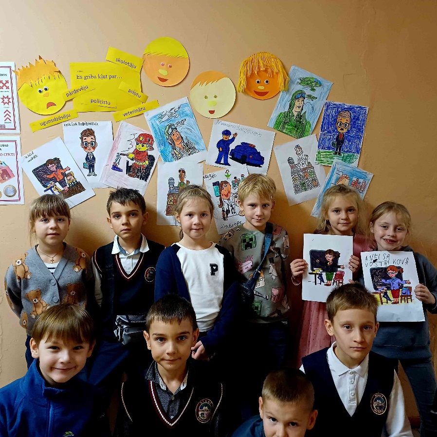 2.b klasē notika “Profesiju nedēļa”, kuras laikā skolēni iepazinās ar dažādām profesijām, kas ir aktuālas un nozīmīgas mūsdienu sabiedrībā. Nedēļas laikā bērni klausījās stāstījumus, veica radošus uzdevumus un paplašināja savu redzesloku par to, kādas profesijas pastāv un kā tās ietekmē mūsu ikdienu. Īpaši aizraujošs un izzinošs bija Sonjas Kriņicinas tēta stāstījums par inženiera darbu Rīgas ostā. Viņš iepazīstināja bērnus ar to, kā ostā tiek organizētas kravu pārvadāšanas, kādas iekārtas un tehnoloģijas tiek izmantotas šajā procesā un cik svarīga ir inženiera loma loģistikā un ostas darbībā. Tas noteikti veicināja izpratni par matemātikas nozīmi un interesi par inženierzinībām un fiziku nākotnē. Piektdien priecēja īpaša viešņa – Rodiona Seiko mamma, horeogrāfe Marina Seiko. Viņa pastāstīja bērniem par savu aizraujošo un radošo profesiju, kā arī vadīja baleta meistarklasi. Stundas laikā bērni ne tikai uzzināja par horeogrāfa ikdienas darbu, bet arī paši iesaistījās kustību mākslā, izpildot vienkāršus, bet graciozus baleta elementus. Šī bija lieliska iespēja bērniem atslēgties no ikdienas un iedziļināties radošā, iedvesmojošā atmosfērā. Īpaši patīkami bija novērot, cik pozitīvi un pacilāti skolēni jutās pēc nodarbības – daudzi bija patiesi iedvesmoti, dažiem "atvērās otrā elpa", un vairāki bērni pat izteica vēlmi nākotnē apsvērt horeogrāfa vai dejotāja profesiju.