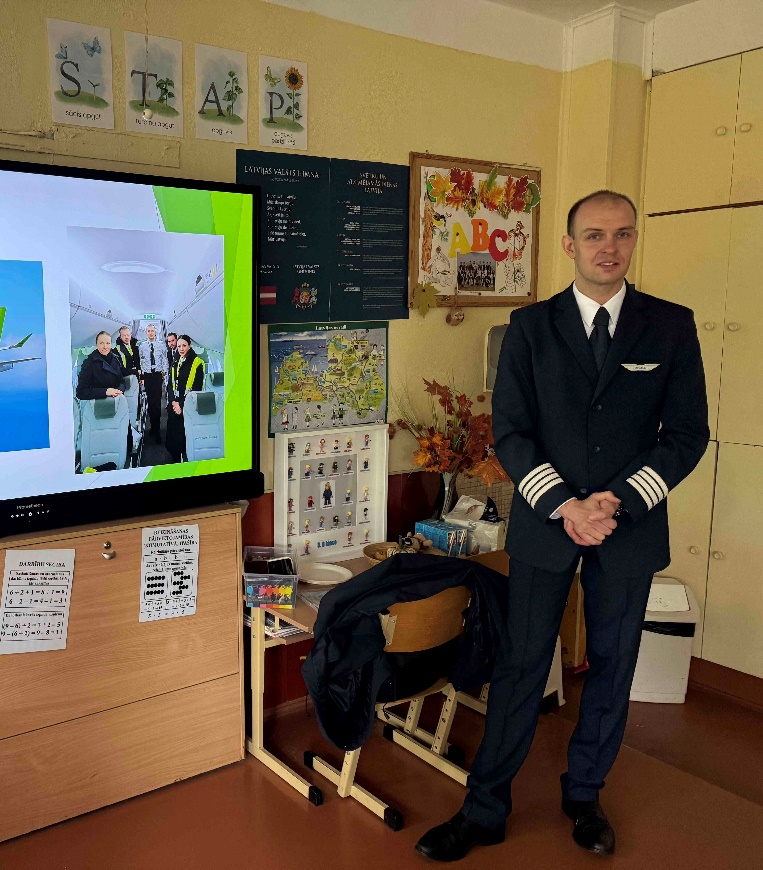 1.a klase klases stundā "'Mana vecāka profesija'' - tikšanās ar skolnieces tēvu – aviomehaniķi. Skolēni uzzināja kā tiek uzturēta lidmašīnu drošība un kāpēc šis darbs ir svarīgs, attīsta prasmi klausīties un uzdot vienkāršus jautājumus, gūst plašāku priekšstatu par profesiju pasauli. Skolēni uzzināja, kas ir aviomehāniķa galvenie darba pienākumi, cik svarīga ir drošība lidmašīnās un kādas zināšanas un prasmes šajā profesijā nepieciešamas. Skolēni varēja apskatīt dažus ar darbu saistītus priekšmetus un uzdot jautājumus. Tikšanās veicināja interesi par profesijām un rosināja sarunas par nākotnes sapņiem. Klases stundas laikā skolēni dalījās arī ar informāciju par savu vecāku vai aizbildņu profesijām. Skolēni iepriekš sagatavoja īsu stāstījumu vai prezentāciju, kurā pastāsta, ar ko nodarbojas viņu vecāks, kādi ir darba pienākumi un kāpēc šis darbs ir svarīgs. Stundas gaitā tiek veicināta skolēnu izpratne par profesiju daudzveidību un to nozīmi sabiedrībā, kā arī attīstītas komunikācijas un prezentēšanas prasmes.